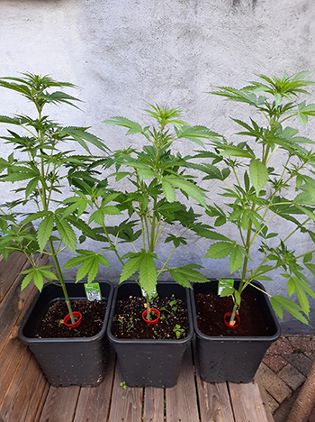 De fotoperiode gevoelige Gold Rush Outdoor en Bubblegun van Spliff Seeds gaan ook goed. Net als de andere fotoperiode gevoelige soorten. Bij hun pleeggezinnen voelen Sneeze en Mohammed uit de CNNBS shop zich ook uiterst op hun gemak. Wat ik tot nu toe heb vernomen is dat ze flink in de watten worden gelegd. Ik heb al foto’s van ze gezien in de zon bij het zwembad. Op de gang van zaken van de fotogevoelige strains in onze tuin en in die van de pleeggezinnen kom ik later in het seizoen terug.