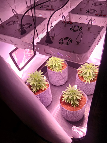 De dames hebben het heel goed gedaan tot dusver, en stonden in de eerste twee weken onder een 24/0 lichtschema. Verderop in de cyclus ging het ook lekker, want een paar weken later stonden ze dus al in hun eindpotten. Hiervoor heb ik 16 liter Root Pouches gebruikt, potten van textiel voor een extra goede ontwikkeling van het wortelstelsel.