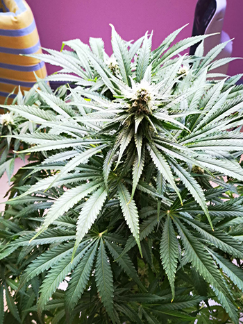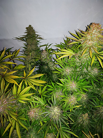 De vier CNNBS Indica’s hebben 4 weken in de voorgroei gezeten (2 weken op 24/0, 2 weken op 18/6). Op de dag dat ze een slordige 60 cm hoog waren, heb ik de klok omgezet. Vanaf dat moment hebben ze tot aan 10 dagen voor de oogst op een lichtschema van 12/12 gestaan, en kon de bloeifase beginnen. Tot dusver hebben de dames ook steeds om de twee dagen hun voeding gekregen. Te weten Mills Start en A&B.