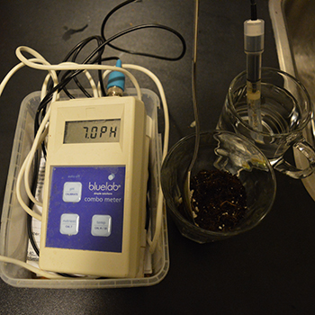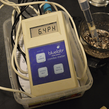 Om de pH-waarde van je aarde te meten, maak je een modderig mengsel van een eetlepel aarde met water met een pH-waarde van exact 7. Een half uurtje later meet je de pH-waarde van het mengsel nog eens om bij benadering de pH-waarde van je aarde te achterhalen.