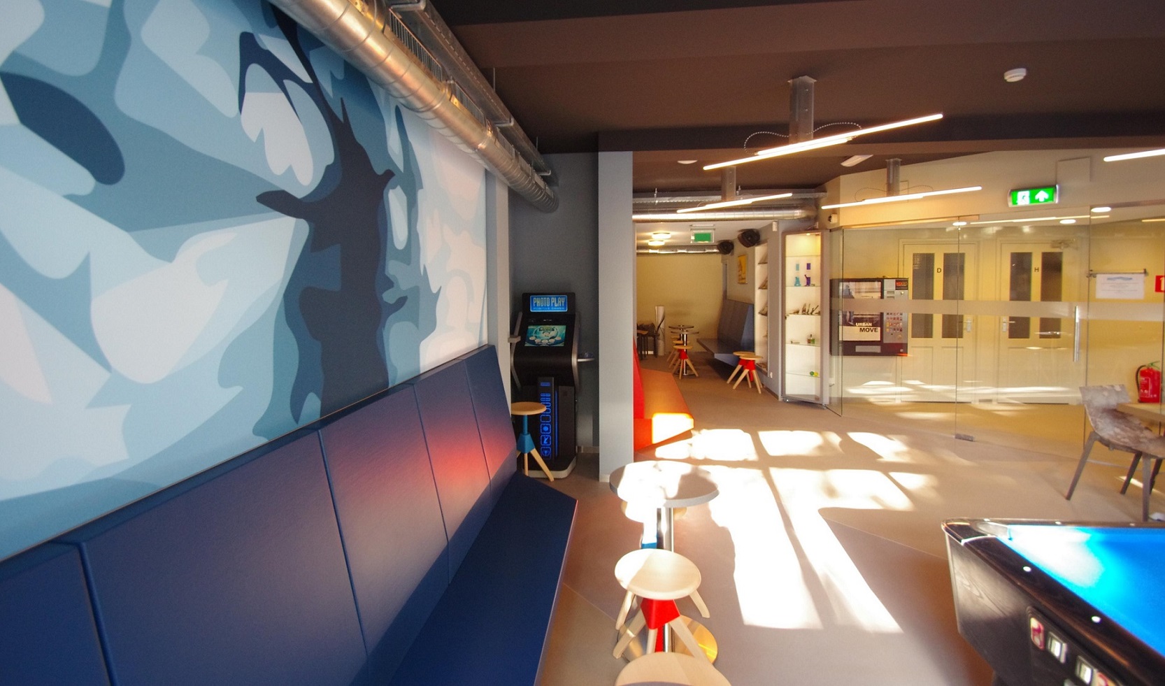 Er is een grote consumptieruimte met poolbiljart, verdampers, een flipperkast en bordspellen, er ligt elke dag een verse krant en er zijn flyers met tips voor verstandig gebruik van cannabis.