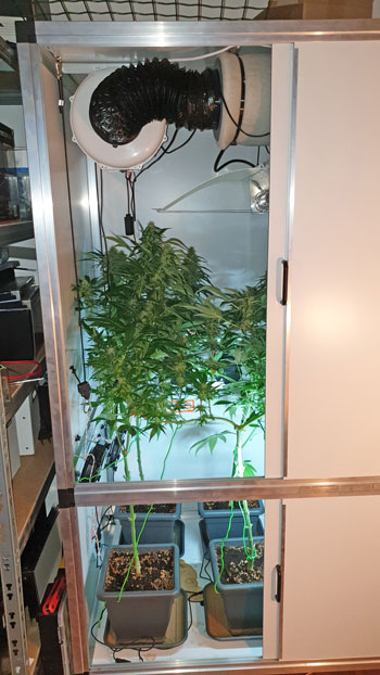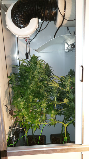 Zó, wat een hitte deze week! En niet alleen buiten maar ook in de CNNBS G-Kit XL. Gelukkig heeft de kweekkast een goede koolstoffilter, en is er in de kamer waar hij staat niets van mijn wietplanten te ruiken. Ondanks dat de dames vol in bloei staan kan ik de kamer daardoor goed ventileren naar de buitenwereld toe.