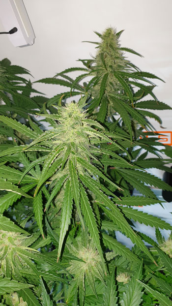 De Morning Glory planten zijn behoorlijke dikke toppen aan het kweken. Deze dames lijken de hoge temperatuur wel op prijs te stellen. Dat kan kloppen want Morning Glory is een sativa dominante wietsoort, en die groeien van nature bij zeer tropische temperaturen.