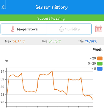 Het klimaat in de CNNBS G-Kit XL is weer meetbaar. De datalogger (Engbird) zat blijkbaar vol en kon geen gegevens meer opslaan. Ik had hem aan de start van deze kweekronde een reset geven maar dat was niet genoeg om de gegevens te wissen. Ik moest hem achteraf geheel verwijderen uit de app en opnieuw aan moeten maken. Beetje omslachtig maar ja, het is gelukkig gelukt om hem weer aan de praat te krijgen.
