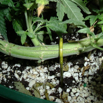 Joggen is eigenlijk een soort bonsai-techniek waarbij je U-vormige metalen pins gebruikt om je planten laag aan de grond mee te pinnen. Je creëert hierdoor een zogenaamde ‘Jungle Of Green’, of kortweg JOG. Wanneer je wietplant ongeveer drie tot vier nodes heeft, kun je ermee beginnen door de hoofdstam voorzichtig horizontaal te buigen en met een pin vast te zetten. Je kunt de plant ook bij de eerste node toppen en twee kanten op joggen. Steeds wanneer de hoofdstam(men) een centimeter of 10 gegroeid zijn, neem je een nieuwe pin en buig je de nieuwe groei naar beneden. Zo maak je een wietplant waarvan de hoofdstam horizontaal een paar centimeter boven de grond groeit. Wanneer de pot bedekt is met een superlage wietplant, schakel je over naar de bloeifase en hou je een plant over die nauwelijks hoger is dan je grootste top.