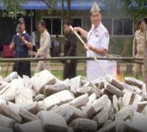 Over naar Thailand, waar ze zoals bekend niet veel op hebben met cannabis, tenminste de autoriteiten niet. De militairen die het land regeren – in naam van de koning – laten dan ook graag zien hoe ze met wiet omgaan: vernietigen!