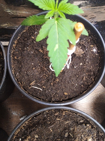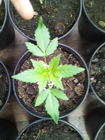 Laat ik met de groei beginnen, want dat is denk ik het belangrijkste dingetje. Opvallend is dat deze wietplantjes erg gestrekt zijn, en kennelijk niet uit zichzelf rechtop kunnen staan gezien de ondersteuning. Dit geeft om te beginnen alvast aan dat ze wat te weinig licht ontvangen. Dat is namelijk de reden dat ze zo lang en dun zijn. De zaailingen zijn gaan strekken omdat ze als het ware hopen op meer licht als ze het hogerop zoeken.