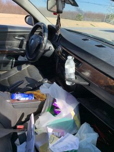Toen de agenten de auto naderden zagen ze dat het voorin een zootje was met rommel en snacks en dat op de achterbank diverse vuilniszakken rondslingerden. Maar wat het meeste opviel – en daar komt ie weer de eeuwige klassieker – was de ‘distinctive skunky odour associated with cannabis’. Dat betekent uiteraard automatisch een doorzoeking van de BMW.