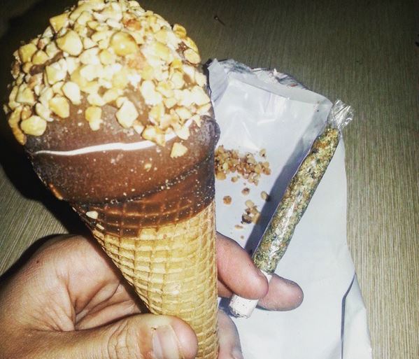 Wiet combineert fantastisch met andere lekkernijen, Paula’s favoriete combo is deze: een pure Silver Haze joint, gerold in een transparant en flinterdun vloeitje, afgewisseld met een romig vanille ijsje met een chocoladejasje, gepaneerd in verse amandelen. Yummie!