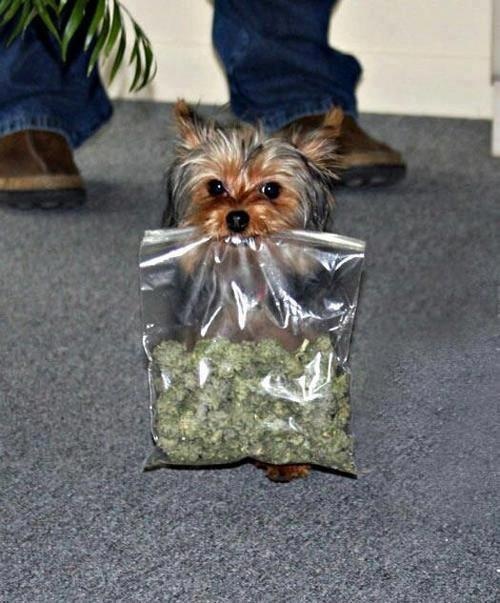 Je hebt honden die pantoffels brengen en er zijn er die ’s ochtends de krant voor je halen. Erg indrukwekkend hoor, maar niet vergeleken met wat Snuffie kan. Jules heeft zijn hondje namelijk geleerd om met zakken wiet te slepen, als het tien voor half vijf is (4:20) gaat Jules’ wekker af, wat het teken voor zijn hondje Snuffie is om de wiet te brengen. Hondig toch?