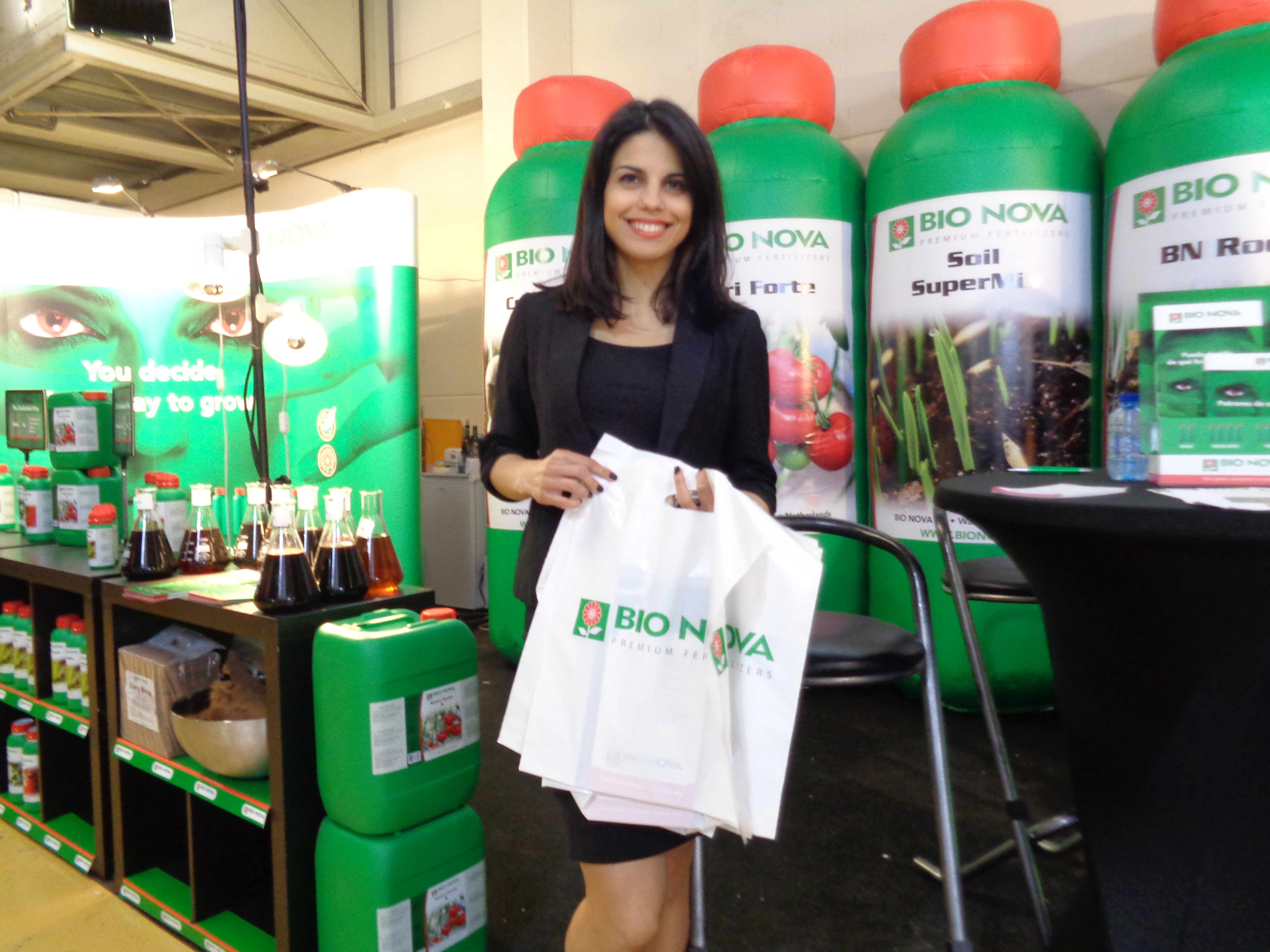 Het was goed toeven op een van de barkrukken in de Bio Nova stand op Spannabis. Vanwege de gezellige en deskundige mannen van de betrouwbare producent van plantenvoeding maar ook zeker dankzij het gezelschap van de mooie Carmelita die bezoekers van een gratis goodiebag voorzag.