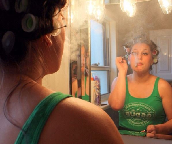 29 april 2016 - Karla heeft een gat ...in haar sportpakje welteverstaan, maar gelukkig biedt een rokende bong altijd troost -