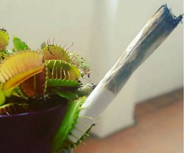 Zelfs planten zijn dus gek op wiet, zo blijkt. We kunnen het ze ook moeilijk kwalijk nemen, maar het zal best irritant zijn lijkt ons. Als Kelly namelijk even niet kijkt, gapt haar wietrokende plant, zo haar jointjes uit de asbak!