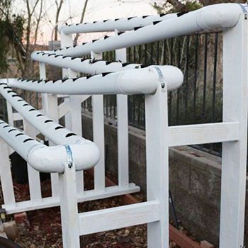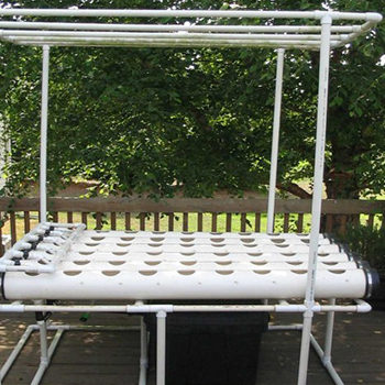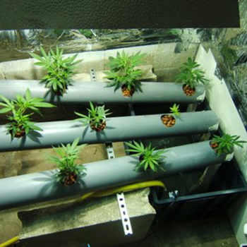 Het is ook zeer goed mogelijk om zelf een NFT-systeem in elkaar te zetten. Wat je nodig hebt is wat handigheid maar vooral een goede kennis van de werking van de systemen. Veel zelfbouw NFT-systemen worden gemaakt van grote PVC buizen. Door daar gaten in te boren kun je er netpotten in plaatsen voor de planten. Vervolgens dien je voor de afwatering te zorgen terug naar een voedingsreservoir en heel belangrijk: de juiste helling in te stellen. Daarna is het een kwestie van een pomp installeren die het voedingswater op het hoogste punt in het systeem pompt. Hieronder wat afbeeldingen van zelfgemaakte NFT-systemen.