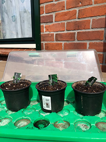 Helaas zijn maar drie van de vijf zaadjes ontkiemd. Er zullen daarom later nog twee nieuwe planten bijkomen, want ik wil in ieder geval wel het gedoogde aantal van vijf wietplanten kweken buiten. De gelukkige zaden die wel uitkwamen zijn Strawberry Milkshake, Girl Scout Cookies en Gorilla Glue #4. Al deze strains komen uit de stal van B-S-B Genetics (Birmingham Seed Bank). Dit is een sterke, relatief nieuwe speler op de markt met hele mooie genetica, uit zowel Spanje als de booming Amerikaanse cannabiswereld. Een aantal B-S-B zaden zijn te koop bij Zamnesia en zeker de moeite waard.