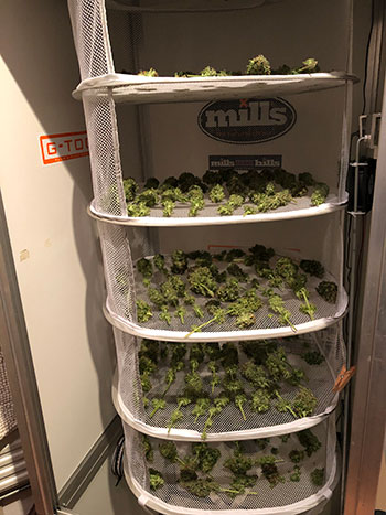 Na de grote bladeren van de plant te hebben getrokken, hang je de plant ondersteboven te drogen en wacht je tot ze echt droog zijn. Daarna doe je de toppen in de trimbag, schud je die een paar minuten schudden en klaar is Kees! Handig dus! Je verliest op deze manier wel wat trichomen ten opzichte van met de hand knippen, maar die kun je weer opvangen en gebruiken om bijvoorbeeld wietboter of medicinale wietolie van te maken.