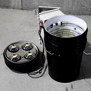 De Space Bucket Pro is een zeer goed uitgevoerde Space Bucket van ene Morrigan. Hij gebruikte de typische Space Bucket emmers en installeerde daarin vier 100 Watt COB leds die hij op 30 Watt per stuk laat branden. Een oude pannendeksel doet dienst als reflector. Aan de buitenkant zitten alle elektronische onderdelen zoals een timer en het stopcontact netjes weggewerkt in een elektra aansluitdoos.