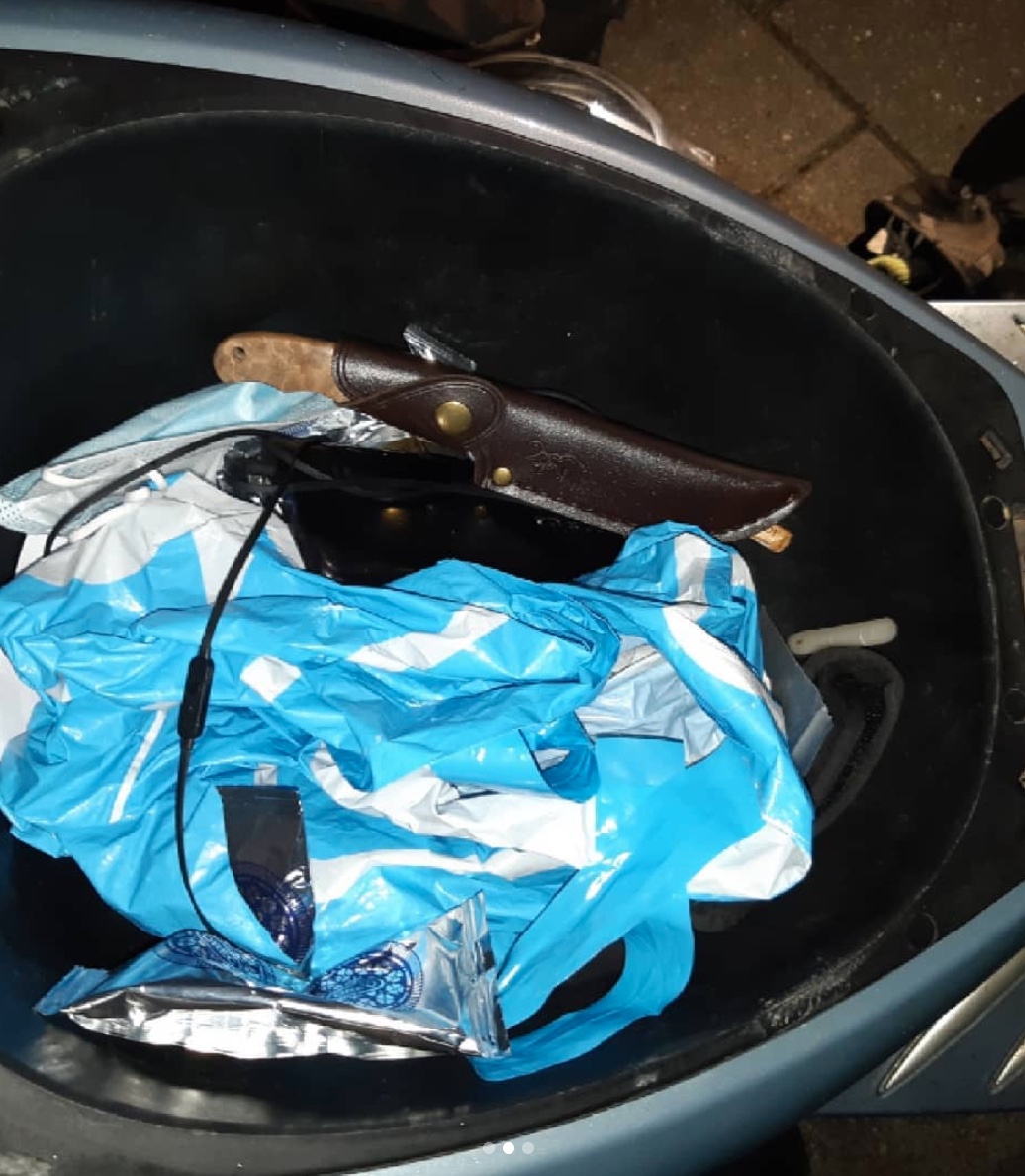 Ja hoor, die voel je al aankomen: iets met drugs. En om dat niet beter te maken, ook nog iets met wapens. Afijn, kijk zelf maar even naar de foto van de goedgevulde buddyseat die de Groningse politie openbaar maakte: