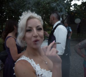 Bruid Clara had zelfs een speciale bruidsbong laten maken voor het trouwfeest op hun eigen ranch – waar ze uiteraard ook zelf wiet kweken (en ja, dat mag in Colorado). Geloof je niet van die bong? Kijk dan:
