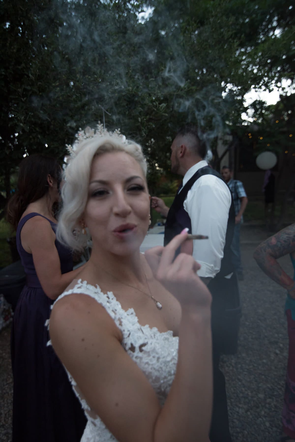 Tegenwoordig is Colorado al enige jaren het cannabiscentrum van de VS en het gelukkige paar runt er dan ook twee shops onder de naam The Bee Dynasty. Al met al dus niet heel verrassend wellicht dat er op de bruiloft edibles worden uitgedeeld, een groot deel van de gasten met genoegen aan een joint hijst of aan de cannabis bar hangt. “Alle gasten genoten er echt van en er was geen enkele spanning”, aldus Dusty.
