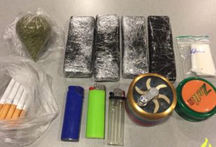 Typisch de werkbagage van een straatdealer inderdaad! Wel van eentje met een sterke voorkeur voor hasj, want daarvan werd 400 gram geteld, naast 30 gram ‘hennep’ (ons lijkt het eerder wiet die al door die twee grinders is gegaan, of erger nog gruis)…
