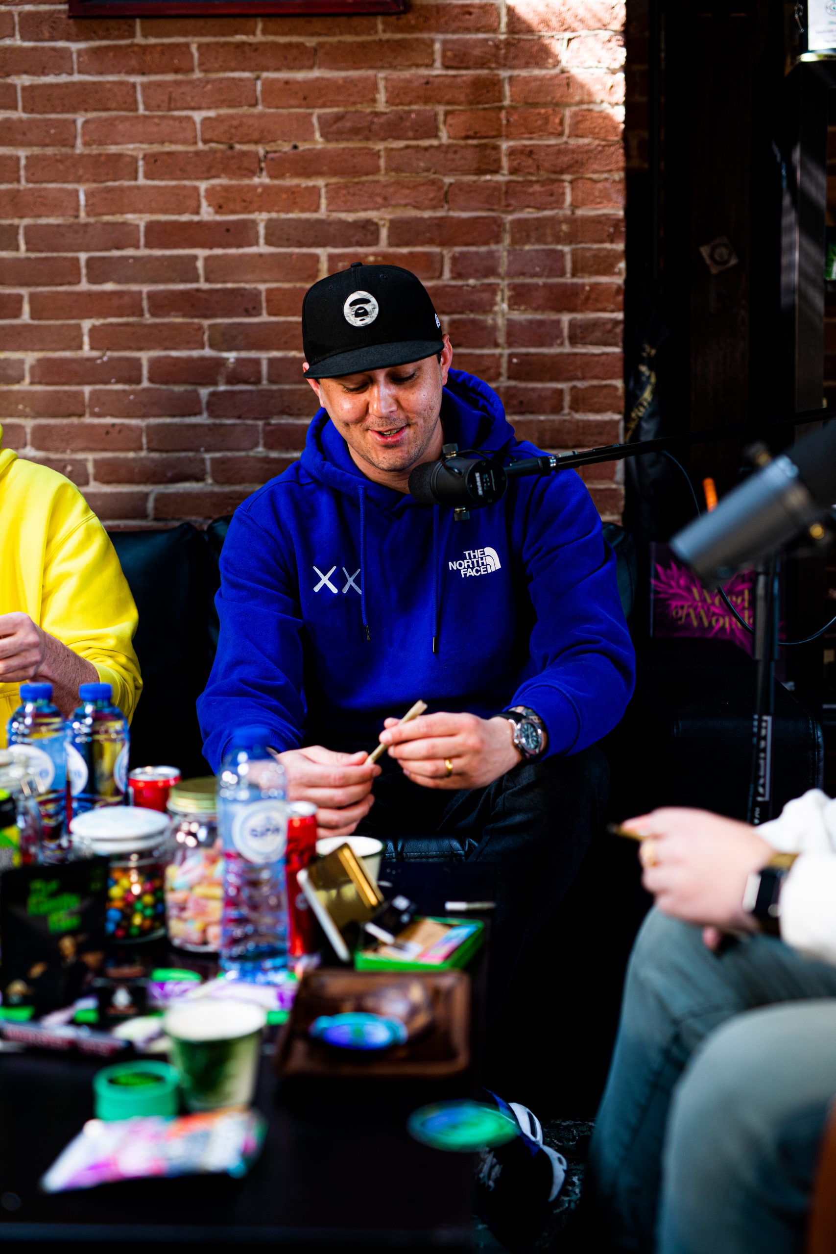 De vlotgebekte presentator houdt het niet bij het ondervragen van zijn gasten, hij heeft ook een hele tafel vol geestverruimende lekkernijen op tafel gezet, waaronder een soort ultieme joint met 2 gram wiet én een halve gram concentraat (rosin) erin. En een selectie van de vetste Amerikaanse strains. Plus veel drinken en zoetigheid zoals M&M’s natuurlijk voor de broodnodige balans.