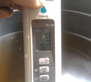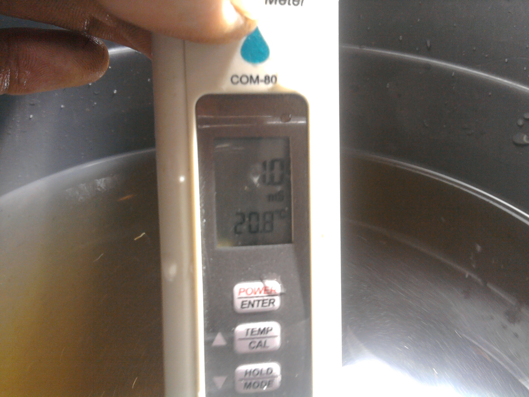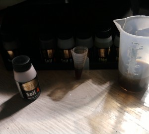 Deze week hebben de planten ook voor het eerst een volledige maaltijd gehad 😉 Ik heb een starterpack van Gold Label voeding gekocht. Daarin zit een complete voedingslijn. Ik heb 1 milliliter voeding van elke component (A en B) per liter water gegeven. De EC van het water zelf was 0,5 en na de voeding erbij gedaan te hebben zat de EC waarde op 1,0.
