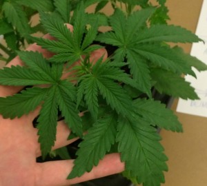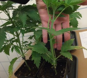 De Serious Happiness en de SSBK groeien gelukkig wel mooi gelijkmatig in hoogte en ontwikkelen zich goed tot nu toe. Dat kun je zien aan de mooie donkere kleur van de bladeren en aan het aantal vingers van de bladeren. Deze kleine plantjes hebben nu al bladeren met 9 vingers terwijl dit gewoonlijk pas bij grotere planten te zien is.