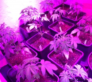 Mijn zaailingen hadden het al heel snel gehad in de kleine potjes waarin ik ze liet ontkiemen. Al binnen 10 dagen werd het tijd om de jongedames in grotere potten over te zetten. De planten ontwikkelen zich onder de LED lampen zeer voorspoedig, ik moet eerlijk zeggen dat ik geen verschil merk in de groeisnelheid van planten onder een HPS lamp.