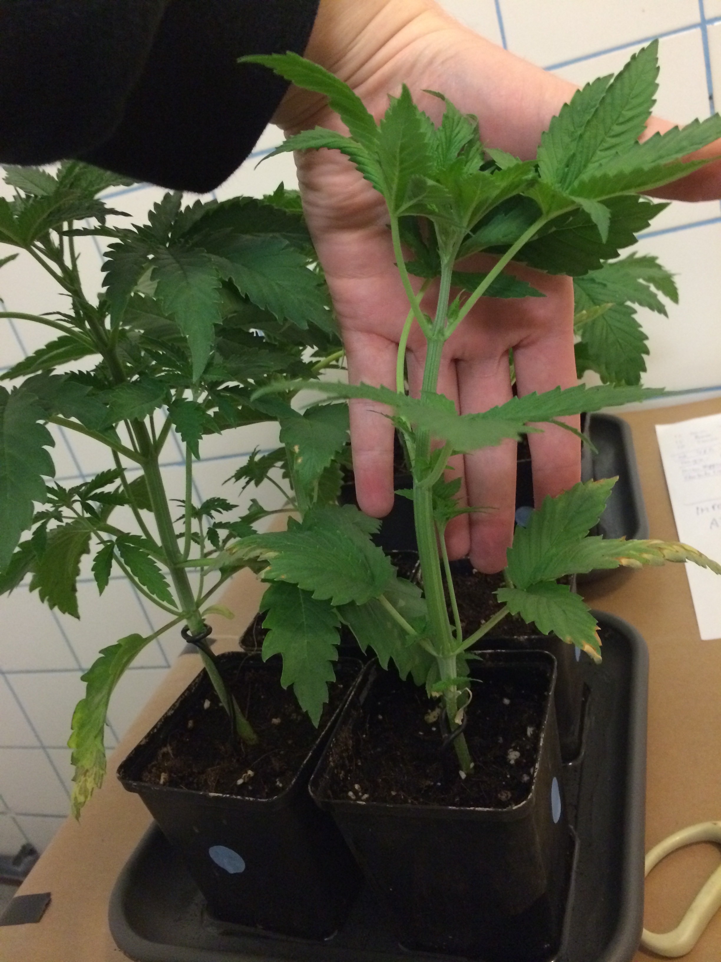 De Serious Happiness en de SSBK groeien gelukkig wel mooi gelijkmatig in hoogte en ontwikkelen zich goed tot nu toe. Dat kun je zien aan de mooie donkere kleur van de bladeren en aan het aantal vingers van de bladeren. Deze kleine plantjes hebben nu al bladeren met 9 vingers terwijl dit gewoonlijk pas bij grotere planten te zien is.