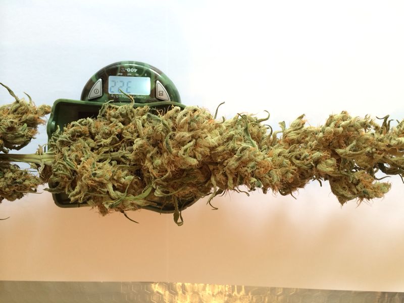 Hoi, lieve Lezers! Mijn planten hebben nu 10 dagen in het donker gehangen, dus wordt het tijd om verder te gaan met de oogst. Ik knip de planten pas als de buds droog genoeg zijn om te roken. Door een zijtakje van de plant om te buigen kun je gemakkelijk testen of de wiet droog genoeg is. Als het zijtakje met een hoorbare knak breekt, dan is het wiet droog genoeg om de buds van de plant te halen. Buigt het takje daarentegen om zonder dat het breekt, dan is de wiet nog te nat om te kunnen roken.