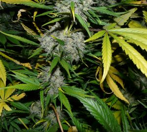 Negen weken lang al groeien en bloeien de Chocolope planten op een licht/donker regime van 12/12 uur, waarbij in de afgelopen weken steeds de dag wat bekort is door mij: van 12 naar 11 naar 10 en nu 9 uur licht. De herfst zit er zwaar in, de planten trekken nu alles uit de bladeren. En dat is natuurlijk ook niet zo gek na 9 weken in de Ultimate Soil van DNA-Mills , zonder enige toevoeging.