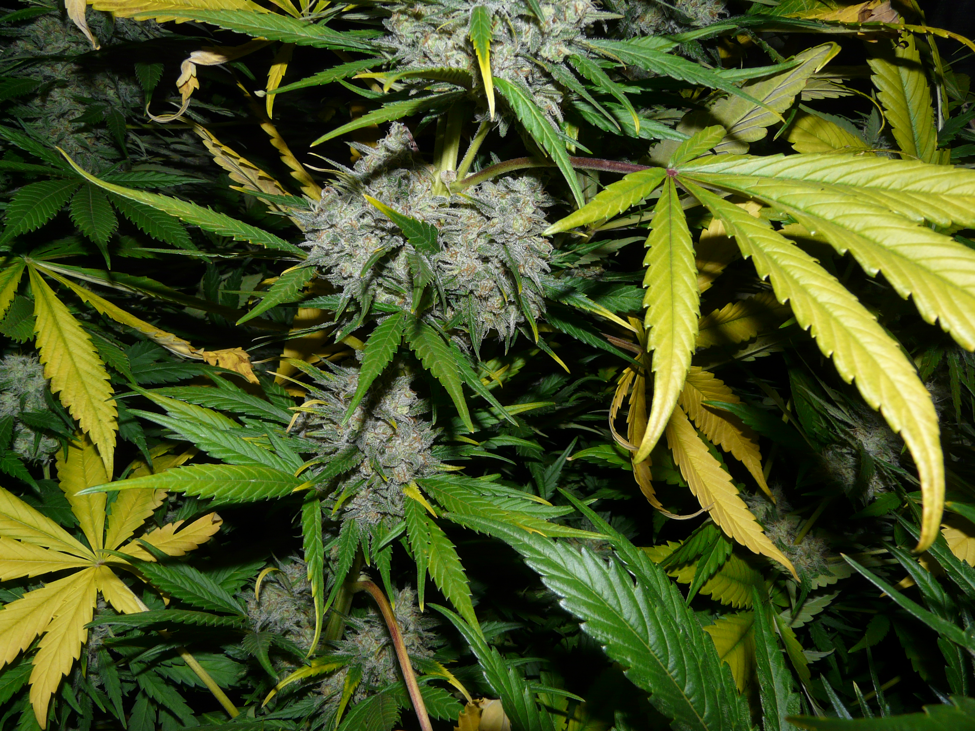 Negen weken lang al groeien en bloeien de Chocolope planten op een licht/donker regime van 12/12 uur, waarbij in de afgelopen weken steeds de dag wat bekort is door mij: van 12 naar 11 naar 10 en nu 9 uur licht. De herfst zit er zwaar in, de planten trekken nu alles uit de bladeren. En dat is natuurlijk ook niet zo gek na 9 weken in de Ultimate Soil van DNA-Mills , zonder enige toevoeging.