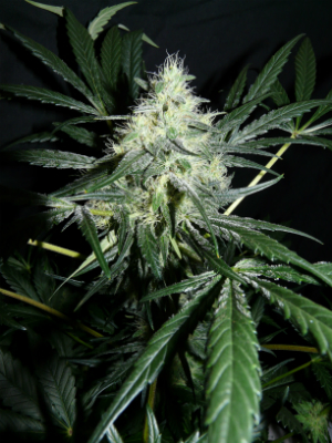 Nu de temperatuur buiten weer wat aangenamer is, draait ook de lamp weer op volle toeren. Ik wil aan het einde van deze rit natuurlijk wel een paar dikke knuppels van toppen kunnen laten zien! Zo te zien gaat dat met een van de dames zeker lukken. Zij is nu een meter hoog en heeft een lange hoofdtop van zeker 60 centimeter die op het moment al heel goed dicht aan het groeien is. Als ik het in moet schatten dan zeg ik dat het nog een week of vier zal duren en dat zijn dan ook meteen de mooiste weken van het kweken 🙂