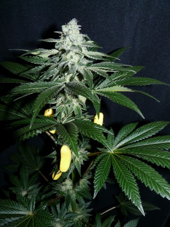 In dit geval heb ik de banaantjes voor de lol in mijn wietplanten gehangen, maar ze kunnen soms ook spontaan in je wiet groeien. Ik maak echt geen grapje, maar heb het over mannelijke stampertjes die soms in wiettoppen kunnen groeien. Het is een verschijnsel dat je soms aan het einde van de bloeiperiode ziet bij wietplanten. Hoewel de stampertjes, die eruit zien als mini-banaantjes en dus ook wel banaantjes worden genoemd, mannelijk zijn en ook stuifmeel produceren betekent het niet dat de wietplanten hermafrodiet zijn. Het is eerder een laatste poging van de wietplant om zich voort te planten.