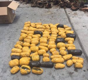 In totaal telden de overijverige wetsdienaren 101 pakjes, goed voor een totaalgewicht van 35,67 kilo. Niet direct een hoeveelheid om je het apelazerus te schrikken, maar toch. De kapitein is in de boeien geslagen en samen met zijn verboden lading afgevoerd naar het politiebureau.