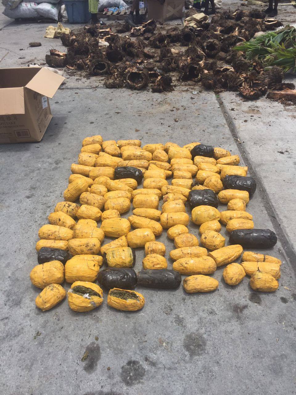 In totaal telden de overijverige wetsdienaren 101 pakjes, goed voor een totaalgewicht van 35,67 kilo. Niet direct een hoeveelheid om je het apelazerus te schrikken, maar toch. De kapitein is in de boeien geslagen en samen met zijn verboden lading afgevoerd naar het politiebureau.