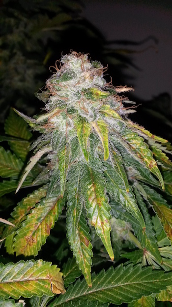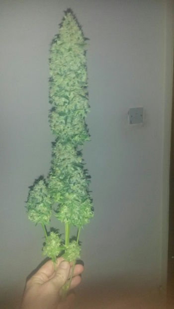 De dikke hoofdtoppen van de White Siberian geven een stevige bodystone. Mijn planten hadden zelfs toppen van 32 en 49 gram! Je zou zeker 12 van deze dames in een 1,4 x 1,4 meter tent kunnen zetten voor 12 megadikke hoofdtoppen van ieder bijna 30 gram. Je zou dan wel het nodige weg moeten dieven want de hoofdtoppen zijn zo dik dat het oppassen geblazen is met die aloude aartsvijand. Nee, ik bedoel niet de Duitsers en ook niet je schoonmoeder, maar toprot. White Siberian is een genot om te kweken.
