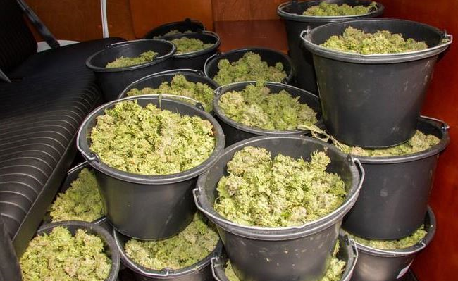 In de kwekerij werd in drie ruimtes gewerkt aan de productie van edele nederwiet. In tientallen emmers (kleine foto) lag de waar al klaar, maar helaas zal die nooit voor een gezonde high zorgen… De politie heeft namelijk alle apparatuur en planten in beslag genomen. Om op gepaste wijze al dit groene leed te herdenken, presenteren we je de foto’s als laatste aandenken 🙁