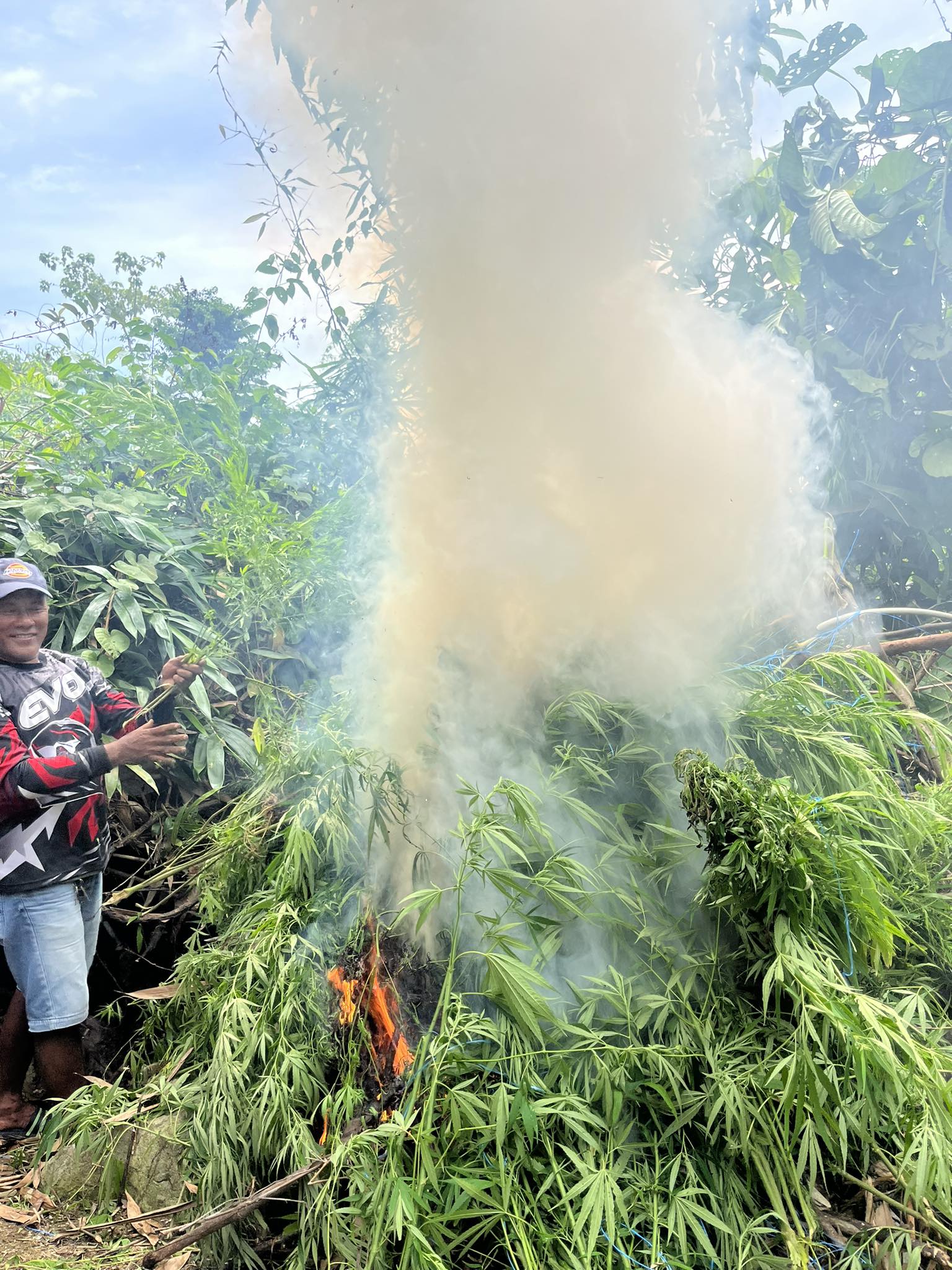 De politie valideerde de melding onmiddellijk en zag twee uitgestrekte landerijen – één beplant met 15.000 wietplanten en de andere met 10.000 planten. “Ons operatieteam heeft de genoemde marihuanaplanten onmiddellijk ontworteld voor vernietiging, de getuigen waren aanwezig tijdens de verbranding,” zei Calacar tegen het Philippine News Agency.