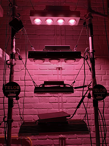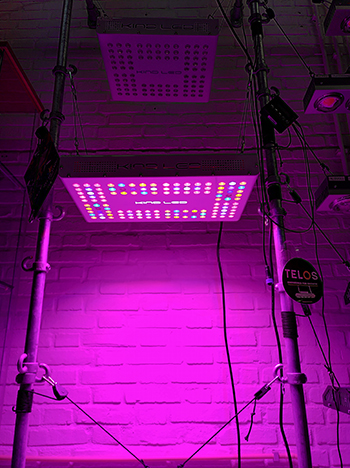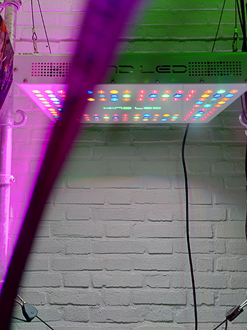 - Het paarse licht van KIND. Je kunt je voorstellen dat planten onder deze lamp niet erg goed waarneembaar zijn.