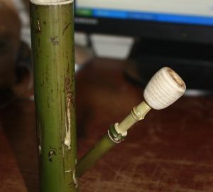 - Als je ook de downstem (het rookkanaal dat in het water steekt) van bamboe wil maken heb je ook een dunner stuk bamboe nodig, je kunt ook een kant en klare downstem en bowl van glas kopen.
