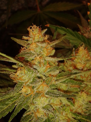 Wanneer mijn vriend Elmo het welletjes vindt en al met de schaar komt aanzetten, stuur ik hem linea recta weer weg. We wachten tot de wiet er ook aan toe is, daar wordt het lekkerder en meer van, en bovendien worden we veel stoneder van een goed afgerijpte top. Dit is ook een bekend verschijnsel; wanneer wiet langer heeft gebloeid en de trichomen al enigszins amberkleurig zijn geworden, komt er wat meer CBN in. CBN geeft je een wat meer stoned gevoel, perfect om mee in slaap te vallen.