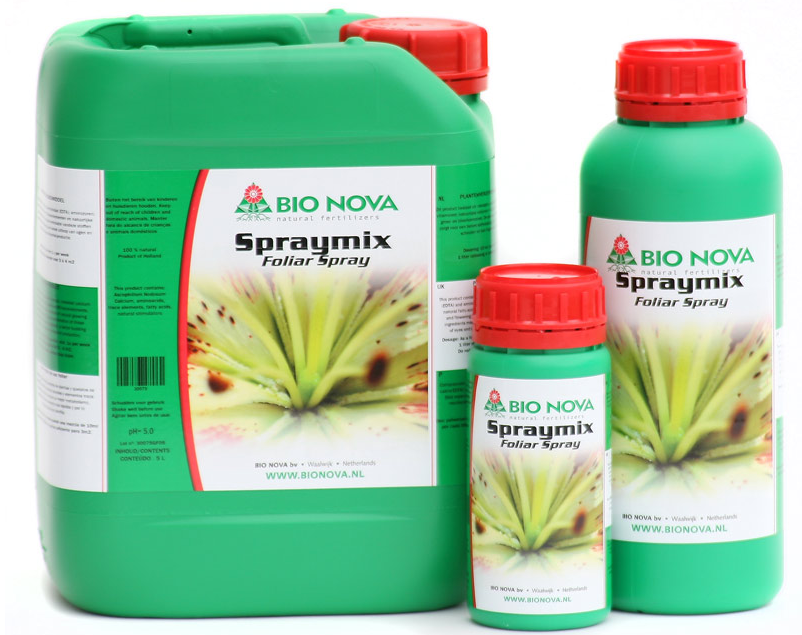 Spraymix is een bladvoeding met Calcium-chelaat, Equiseteum extract (akkerpaardenstaart) voor silicium, zoet- en zoutwater-algen voor zeldzame spoorelementen. Deze bladvoeding wordt gebruikt als de vitaliteit te wensen overlaat of als wortelproblemen een gezonde groei in de weg staan. Door het gebruik van Calcium-chelaat en Silicium worden aanvallen van schimmelsporen afgeslagen.