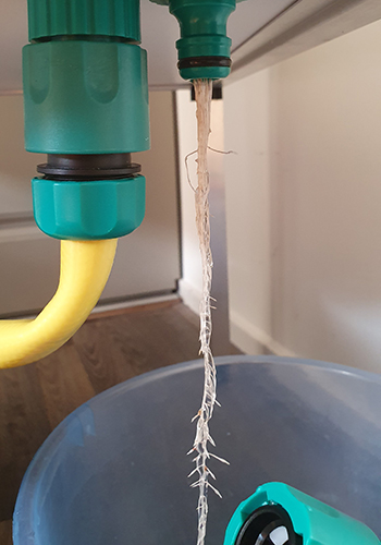 Aangezien dit toch een hydrokweek betreft (mijn eerste), wil ik tot slot nog even afdalen naar de wortels in het systeem. Daar groeit de bak waarin de planten staan namelijk hé-lé-maal vol mee op het moment. De bodem van de bak is zelfs niet meer zichtbaar, ondanks dat die maar een paar centimeter diep is. Het was op enig moment zelfs zo, dat er wortels in mijn overloop groeiden!