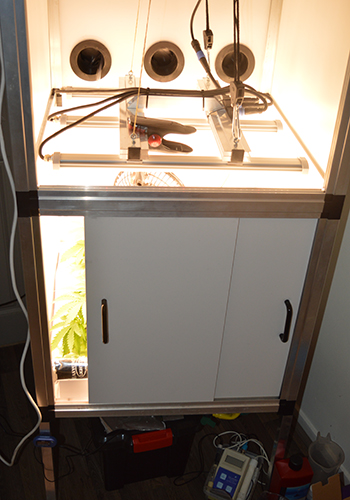 Op de foto’s hieronder zie je hoe kort en gedrongen de Mohammed wietplanten zijn. Om de dikte van de stammen aan te geven heb ik er even een sigaret naast gezet. Je ziet dat de stam al veel dikker is, ondanks dat de sigaret dichter bij de cameralens staat. Om te laten zien hoe je de ventilator aan de G-Bars kunt bevestigen, heb ik daar ook twee foto’s van gemaakt.