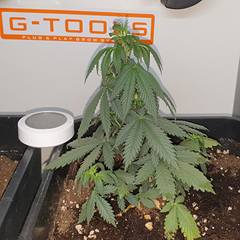 Door naar de kleinere CNNBS G-kit, met verhogingsset. Daar staan (uiteraard) nog steeds de twee Sneeze planten. Deze hebben een goede week achter de rug, al zou je dat misschien niet zeggen aan de hand van deze foto’s. Ik heb de foto’s gemaakt toen de binnenzon net een uurtje onder was gegaan. De dames waren feitelijk net lekker in slaap gevallen toen ik ze weer eens kwam lastigvallen voor een fotomomentje.