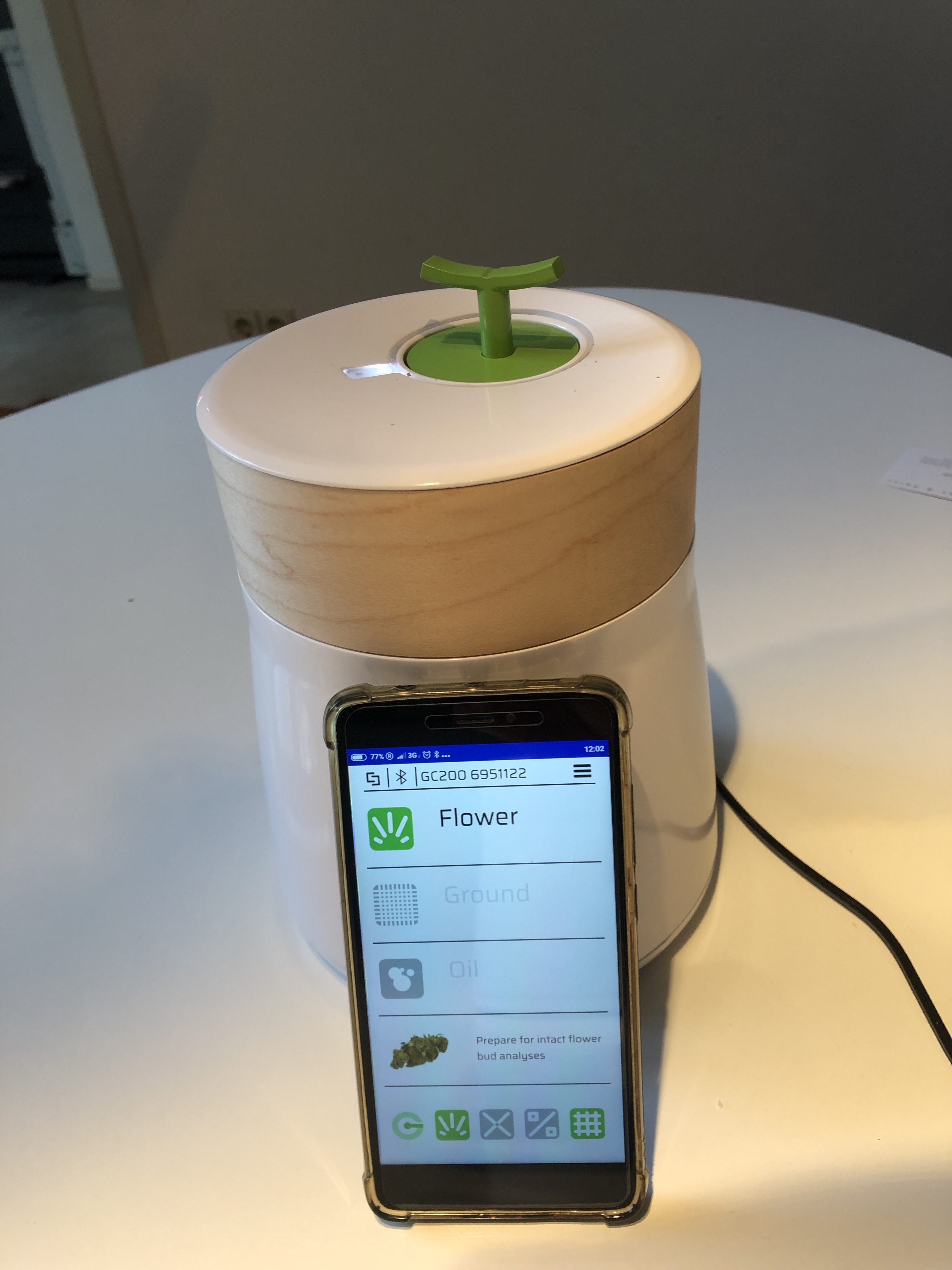 Sinds vorige maand is een apparaat verkrijgbaar dat in iedere coffeeshop kan worden gebruikt: GemmaCert. Het apparaat is klein en buitengewoon handzaam. In een kwartier zijn de testresultaten zichtbaar op een Android telefoon. Je steekt een topje wiet op een opstaande pin en sluit het apparaat. Vervolgens wordt het topje grondig getest en volgt het resultaat: deze wiet bevat 17,3% THC en minder dan 1% CBD.