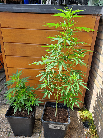 Update 21 juli 2023: Hi allemaal, een korte update vanaf het testfront hier. Beide dames verkeren in goede gezondheid en stralen van geluk. Leuk om te zien hoe verschillend ze beide zijn qua silhouet. De Dynamite Kiks is een kanjer met wat meer sativa looks, en bij de #25 Dynamite zitten de nodes al wat dichter op elkaar, wat ze korter en bossiger maakt. Het is wat aan de late kant maar ik ga deze week toch nog starten met het verduisteren.
