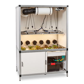 Het kweeksysteem bestaat uit een lekbak met deksel, waarin zich 5 of 15 netcups bevinden. De netcups vul je met hydrokorrels, hierin groeien de planten. De lekbak staat op een aluminium tafel met daaronder het waterreservoir. Via degelijke dikke tuinslangen wordt vanuit het reservoir continue water naar de wortels gepompt. Via de overloop vloeit het water terug in het reservoir, zodra de waterstand boven de 4 centimeter komt. Het gehele systeem is gesloten, waardoor er geen licht op het water kan schijnen, en er dus ook geen algen in het systeem kunnen groeien.